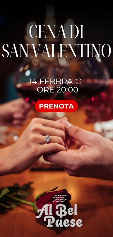 Al Bel Paese abbiamo creato una cena di San Valentino pensata per chi non vuole improvvisare, per chi cerca un ristorante romantico dove ogni dettaglio sia curato, dal primo assaggio all’ultimo calice.