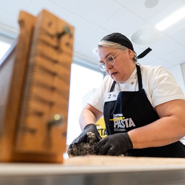 Tuttavia, stando lì dietro le quinte, ho capito una cosa fondamentale. In un "Campionato della Pasta Fatta a Mano", si incontrano due mondi che spesso si sovrappongono ma che sono distinti: quello dello Chef, che trasforma e armonizza, e quello del Pastaio, che genera la materia prima dal nulla.